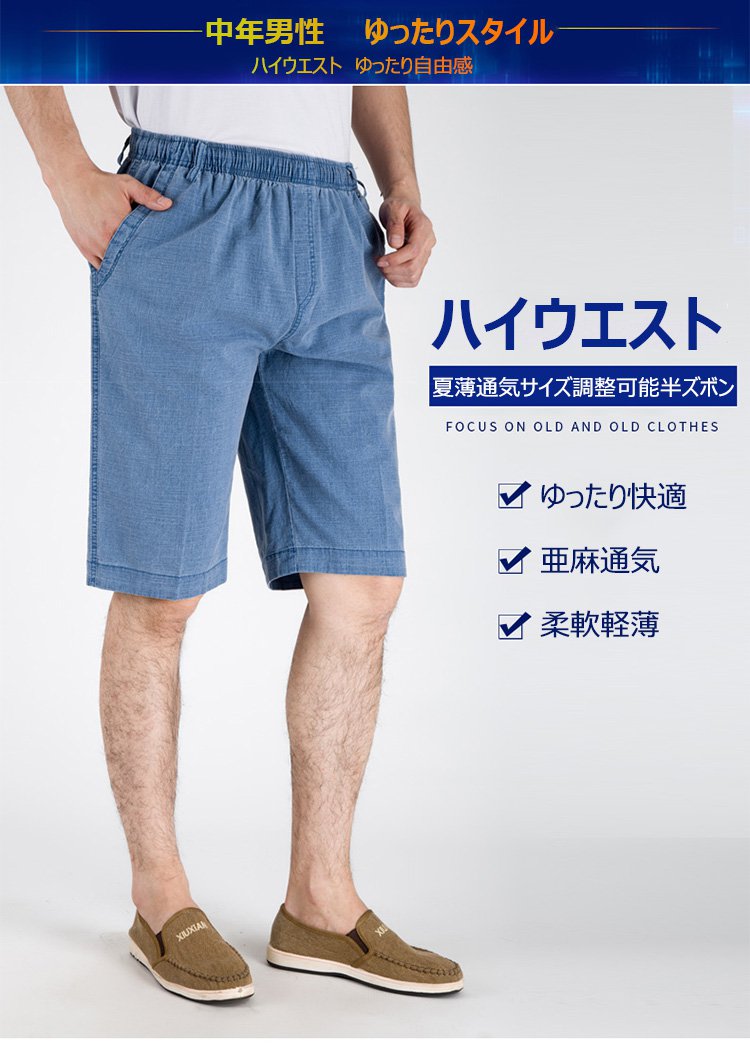 メンズ半ズボン  中年 シンプル  快適 通気 亜麻